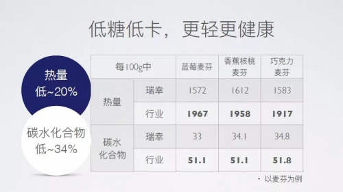 除了有顶级的供应商保证品质外,食物健康也是瑞幸轻食关注的重点。虽然甜品一向是高糖高卡路里的重灾区,但是瑞幸咖啡为了迎合都市白领的健康需求,与供应商合作开发了低糖、低卡路里的轻食产品,其轻食所含热量比行业的平均水平20%,碳水化合物则比行业的低34%。让人们在享受美味的同时,也降低了身体的负担。