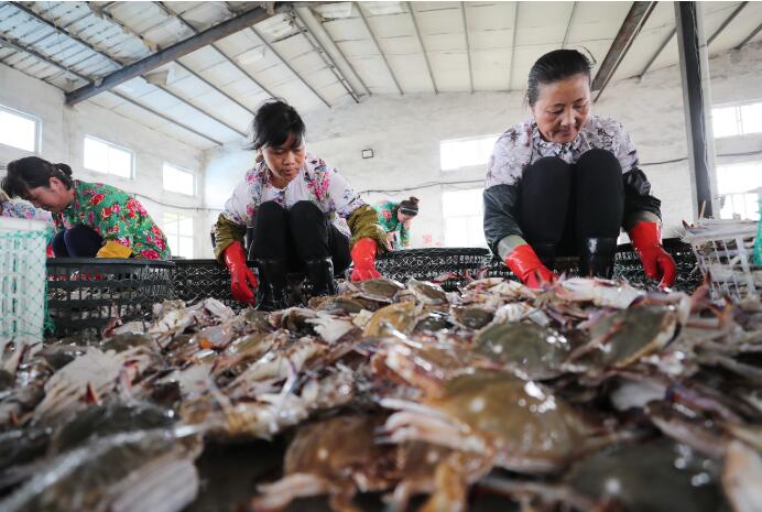 自8月1日12时起,黄海和东海海域桁杆拖虾、笼壶类和刺网渔船休渔结束。江苏省连云港市赣榆区首批驶往黄海渔场开捕的渔船近日陆续返回渔港,满载而归,当地渔业码头每天有40多万公斤梭子蟹捕获上岸。渔民们将鲜活梭子蟹分拣装筐,除满足本地市场供应外,大部分销往北京、上海、广州等地。