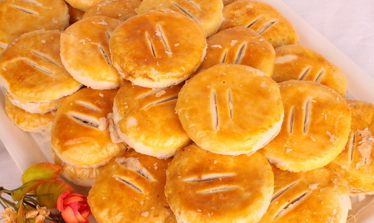 一来是酥,无比的酥,会在入口一瞬间如飘雪般融化;二来是纯,用天然蔬果做的馅料,十分滑顺,不会出现粘牙或咬不断的现象。三来是清,据说用的是玉米胚芽油和高级小麦芯粉,没有刺鼻的猪油味和浑浊的粉味。