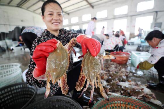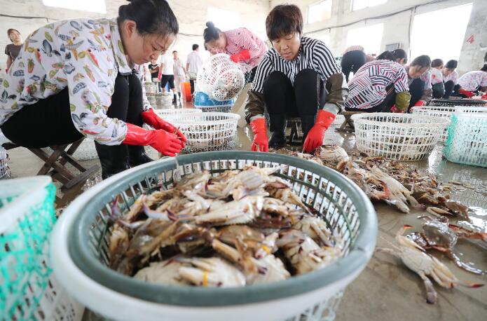 近日,江苏省连云港市秋捕梭子蟹喜获丰收,梭子蟹日到港量40多万公斤,当地渔民加紧捕捞和分拣,及时装车外运,满足市场需求。