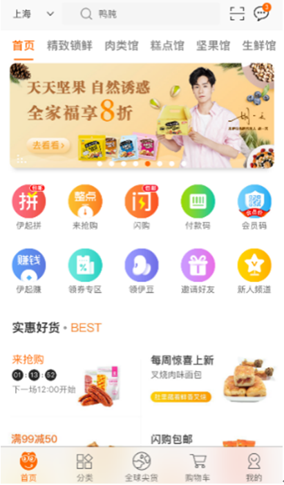 来伊份APP自上线以来,不断推陈出新,现已经发展成为掌上移动美食的聚集地。汇集了坚果炒货、肉类即食、糕点饼干、果脯蜜饯、豆菌笋类、糖果果冻、粮油饮品、全球尖货和生鲜水果等美食的来伊份APP,让人足不出户,便可随时随地享有“想吃就吃”的自由感与便捷感。