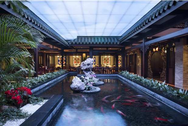 位于充满历史色彩的沙面,古雅的欧陆式建筑群,独揽白鹅潭优雅而从容的江岸线。玉堂春暖在酒店的三楼,是白天鹅宾馆的一块粤菜金漆招牌,尊重传统,又不囿于传统。中式的屋檐与牌匾后别有洞天,锦鲤池塘,假山奇石,仿佛置身于皇家园林之中。