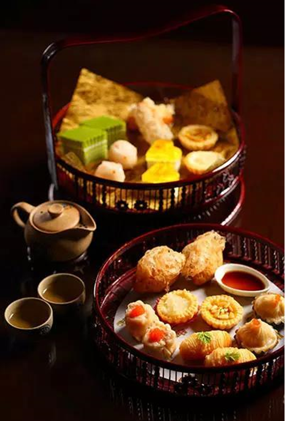 经典的雀笼点心不得不提,上下两层各有蒸点和酥类。上层:笋尖鲜虾饺、带子滑烧卖、东星斑鱼饺;下层:南非鲍鱼挞、香酥叉烧酥、金丝酥、凤尾虾芋角。馅料鲜味自然扎实,每一款出品在水准之上。