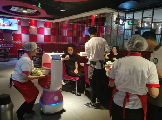 随着AI时代的到来,无人配送机器人必将成为拉动餐饮行业发展的一大趋势,机器人负责领位、点餐、送餐、支付、收台等繁琐事情,人类服务员可以从事更加有价值的工作,顾客可以更从容地享受生活、更自在地享用美食。