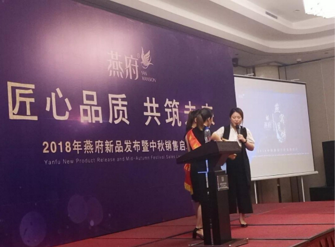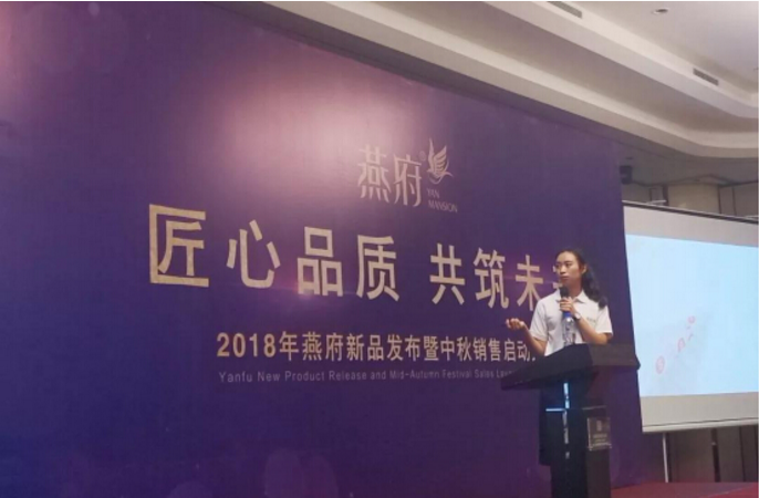培训讲师Rita的登台介绍备受瞩目的燕府明星产品:燕府金燕—即食原味燕窝。从概念提炼确认,到新品正式面世,用料配比精准、反复研发测试只求呈现最佳口感与品相,配以寓意非凡的两层八碗礼盒装成为焦点。中秋时节性美食产品—燕窝月饼,6种口味,不仅颜值清新脱俗,滋味更加营养美妙,传递了今年中秋最流行的月饼吃法:一口燕窝一口月饼,营养滋补,甘甜不腻。