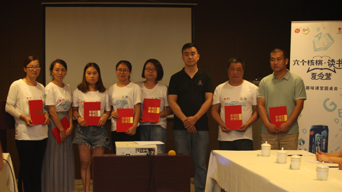 “三尺讲台存明月,一支粉笔写春秋”,在第二天“六个核桃·读书慧”夏令营趣味课堂圆桌会中,拥有30多年教学经验的北京市高级教师张伟老师,受邀到会为孩子们上了生动的一课,同时与远道而来的老师们交流了教学经验。同时,中国红十字基金会的博爱助学中心焦主任也出席了会议,为这些山区老师们颁发了“优秀指导教师”荣誉证书。