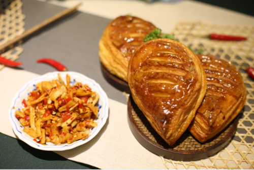 辣椒萝卜是长沙有名的食品,即可以作为酒席上的菜品,又是寻常人家的小吃。丹麦面团与香脆辣萝卜陷碰撞出的火花成就了这款香辣脆萝卜。脆爽的萝卜和浓香的丹麦面包像是两个独具个性但又可以完美互补的CP,缺少任何一方都不完整。