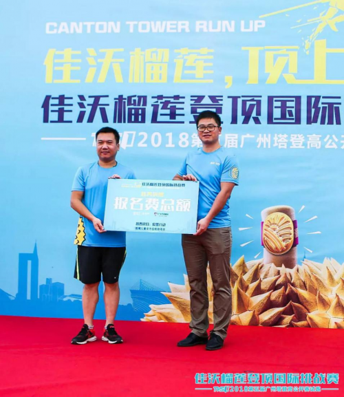 此次榴莲登顶赛事继续秉承登高赛事的公益传统,所有报名费都用于帮助外来务工子女以及需要帮助的小朋友们。启动仪式上,佳沃鑫荣懋集团产品总监雷军将赛事所得善款全部捐赠给广州市慈善会筹募联络部部长徐丹手中,善款将用于“爱蕾行动——困境儿童全方位救助项目”.
