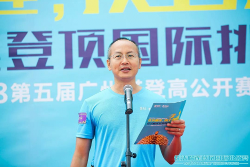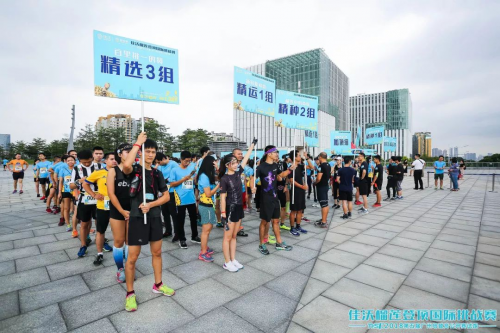 赛事在(左起)佳沃鑫荣懋集团产品总监雷军、广东广播电视台经济频道副总监郑迎红、佳沃鑫荣懋集团市场总监黎亮、广州塔副总经理李明华、广州市慈善会秘书长助理谢际国共同鸣笛声中 正式开始!