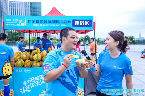 本次榴莲登顶挑战赛除了登高运动,当然也少不了品尝奶香浓郁、入口软糯的佳沃榴莲。所有参赛选手都可以凭号码牌品尝到来自泰国果园,由 5年 以上的 鉴果师 精心挑选,通过严格冷链技术、全程温湿度把控运送到赛事现场的佳沃榴莲。
