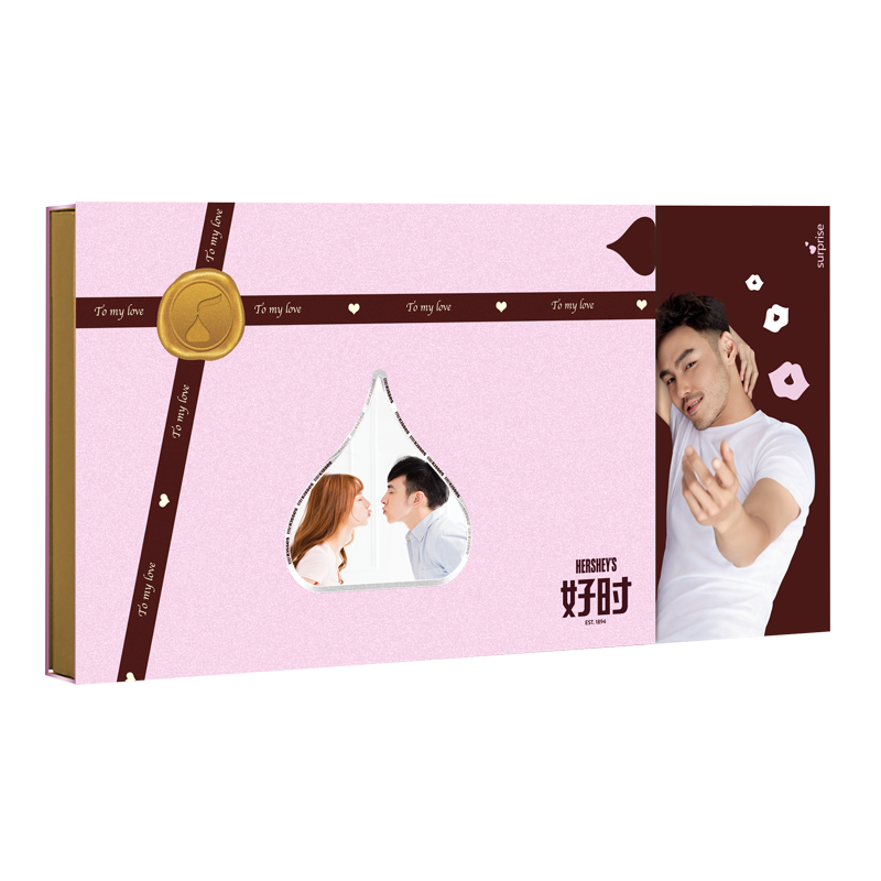 好时KISSES浓醇心意礼盒是由阮经天代言的七夕限量款,可以将照片剪成KISSES礼盒留空处的形状,粘贴在贴板上,这样从礼盒的外包装上就能看到这张照片。这张照片一定要好好挑选哦,可以是你第一次见她,可以是某次重要场合,甚至可以是你为他手写一行情诗,总之要让女生感受到你的用心。据不科学统计,女生在感动的时候,是最没有“理智”的,表白成功率大大增加!