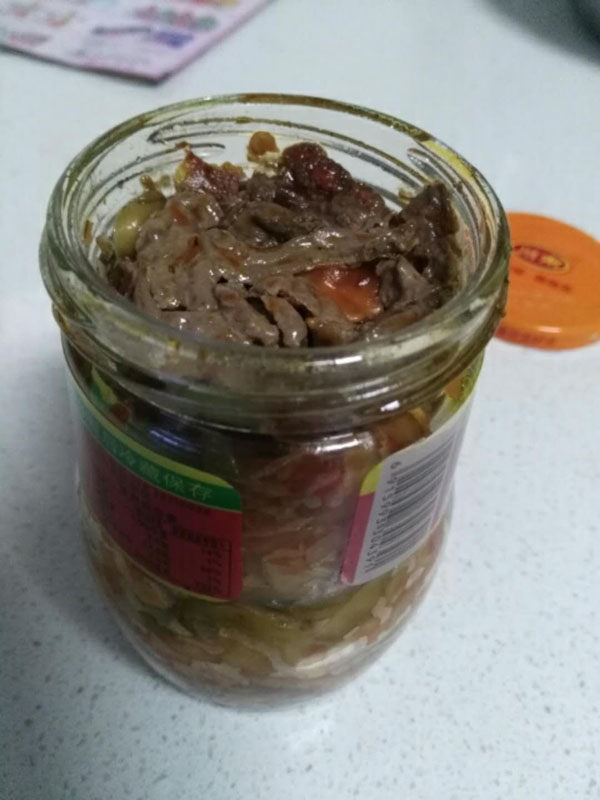 据崔先生介绍,13日晚6点,他在永辉超市花10.8元购买了一瓶川南牌学生下饭菜,准备第二天早晨搭配早餐享用。可是14日清晨他和家人共同吃早餐时,打开下饭菜包装瓶盖后眼前的一幕让他们全家人都懵了,映入眼帘的是一层白色腐烂东西并带有轻微酸臭味,顿时让他和家人食欲全无。