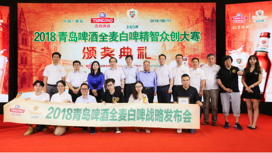 2018年8月11日,青岛啤酒全麦白啤“精酿新时代,斟享心生活”三周年主题战略发布会活动于青岛假日酒店举行,“精智众创大赛” Top6 现场PK赛暨3强晋级收官战也同步开展,并在发布会上举行了颁奖典礼。