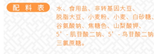 此外,标签上还有两点值得我们留意,一是氨基酸态氮含量。这是判断酱油鲜美程度的指标。国内对酱油的等级划分,基本上就是看氨基酸态氮含量。每100毫升酱油中氨基酸态氮含量≥0.80克为特级,≥0.70克为一级,≥0.55克为二级,≥0.40克的为三级。其中特级酱油的鲜度最高。二是酱油的制作工艺,主要分为高盐稀态和低盐固态两种,高盐稀态采用大豆和小麦发酵,低盐固态使用大豆和麸皮发酵,因为发酵物料不同,因此低盐固态工艺生产的酱油颜色较深,高盐稀态工艺生产的酱油酱香浓郁。大家可以根据自己的喜好进行选择。