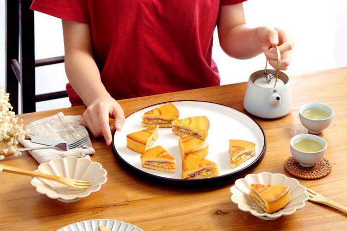 霸气大月饼不仅仅虚有其表,四味网红内陷才是它内在的精髓。麻薯、肉松、蛋黄和芋泥的组合非常具有闽南当地的特色,但恰恰也是近几年美食博主最爱的网红馅料。不同于市面上油腻的月饼,麻薯和芋泥的加入让这个大月饼的口感与众不同,更加清新Q弹。不少美食达人评价,这个大月饼吃起来像雪媚娘和蛋黄酥的混合体。如此独特的口感体验,让对月饼产生味觉疲劳的年轻人重新找到了心头好。