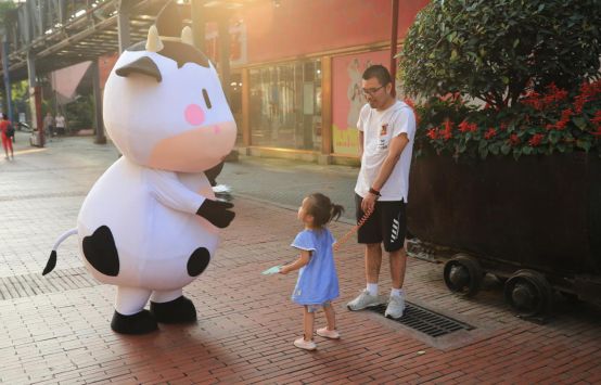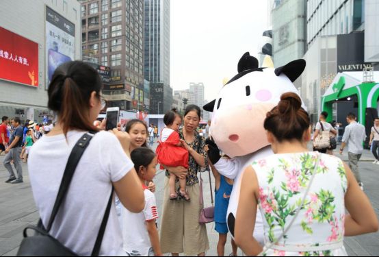 8月11日起,一只蠢萌的小奶牛人偶出现在成都闹市街头,引来过往市民的争相围观与合影。这头小奶牛也是来者不拒,送亲亲、送抱抱,与周围市民热络互动。特别是过往的孩子们,更是围着小奶牛兴奋地手舞足蹈。小奶牛所到之处,皆是人潮涌动,成为近日成都街头的一大景观。