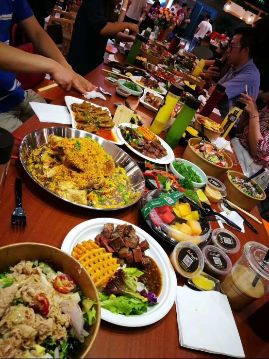 在徐庄苏宁易购广场,智慧零售不仅仅是打破了线上线下的界限,同时还通过供应链、场景、支付、营销、新技术应用等方面的“集成”,实现了完整的智慧零售图景。苏鲜生精品超市推出现场制作的菜肴,味道堪比星级餐厅。当天众多消费者在苏鲜生的第三空间里品尝面包蟹、波士顿龙虾、小龙虾、基围虾、多宝鱼、蛏子、扇贝、意面、土豆泥、牛排、金枪鱼、三文鱼、寿司、牛蛙、鸡汤,还有各种鲜榨果汁、水果拼盘等等,大快朵颐。