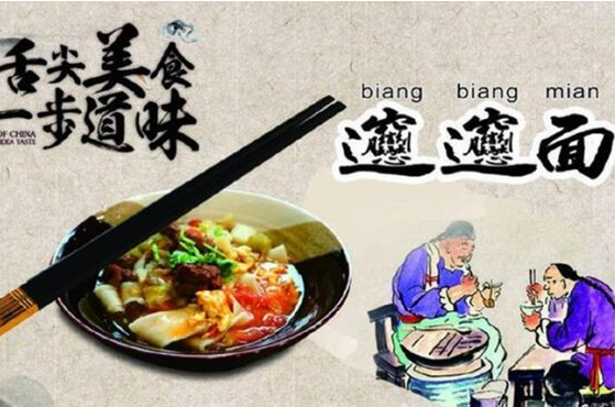 biáng,这个生僻到打不出来的字,背后却是一个当地十分闻名的面的名字,它就是biángbiáng面。这是一种手工擀制,宽似裤带的面条,长二尺有余,调以各色臊子、油泼辣子,香馋诱人,关中地区人尽皆知,家家会做,人人喜食。