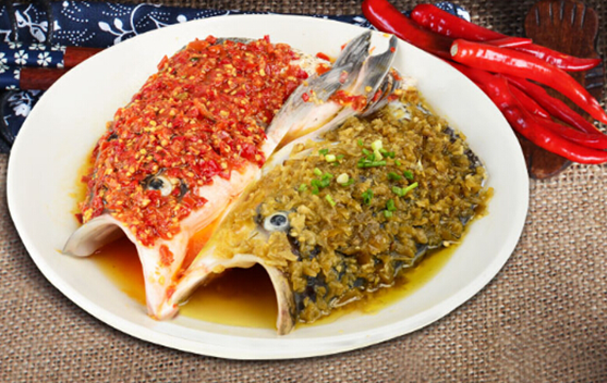 众所周知,湘菜制作精细,用料上比较广泛,口味多变,品种繁多。制法上以煨、炖、腊、蒸、炒诸法见称。而剁椒鱼头作为湘菜代表,广受中外食客欢迎。相传剁椒鱼头诞生于清代,由文人黄宗宪改良,是一道历史悠久的名菜。剁椒鱼头,以蒸制为主,色泽红亮、味浓、肉质细嫩。肥而不腻、鲜辣适口。鱼头的“味鲜”和剁椒的“辣”为一体,火辣的红剁椒,覆盖着白嫩的鱼头肉,入口细嫩晶莹,带着一股温文尔雅的辣味。剁椒鱼头品味上注重香辣、香鲜、软嫩,要想烹制一道成功的剁椒鱼头,除了选用优质鱼头外,剁椒的品质相当关键,甚至有美食家断言:此菜的成功与否取决于剁椒的优劣。因此剁椒的品质至关重要。