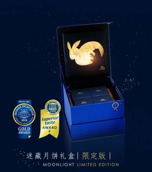 【迷藏月饼礼盒】一共有2种创意包装,每一种都精心设计,暗藏玄机。其中一种包装犹如月亮魔法,变幻无穷。盒上的月亮会随着包装打开的不同程度,出现阴晴圆缺的渐变效果,充满了趣味。