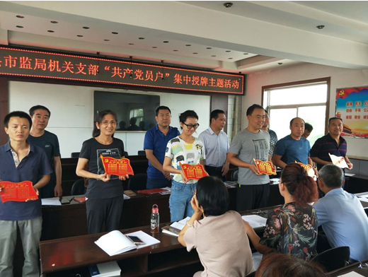 为了认真贯彻落实党的十九大精神,不断引深“两学一做”学习教育活动,不忘初心、牢记使命,积极贯彻落实县委组织部的安排部署,8月21日,武乡县市场和质量监督管理局组织全体党员干部开展“共产党员户”集中授牌主题活动。