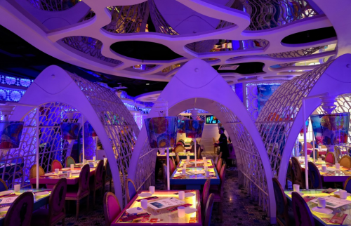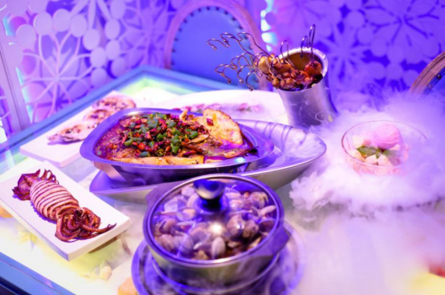 走进鱼非鱼的餐厅,你会发现自己如同置身于带有童话色彩的海洋世界。随处可见白色的镂空鱼鳞结构,在绚丽的蓝色灯光掩映反射之下,用餐者就如同在珊瑚丛中游弋的鱼,轻灵而自由。之所以如此装修,因为鱼非鱼懂得,现在的食客吃的是心情,吃的是感觉。