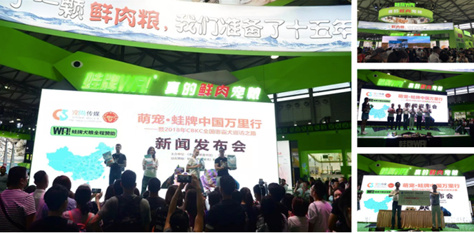 2018年8月22-26日,2018《蛙牌WO!真正的鲜肉宠粮》新品惊艳亮相于上海新国际展览中心。由萌宠中国(CBCK)联合宠尚传媒共同发起,由蛙牌冠名赞助的《萌宠.蛙牌中国万里行-暨2018年CBCK全国恶霸犬巡访之路》的新闻发布会,也在2018年8月25日日于上海新国际展览中心耀目举行!来自行业内的嘉宾和媒体朋友们聚集一堂,共同见证蛙牌新品的耀世登场!