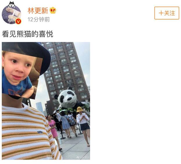这两天林更新居然悄悄跑到成都去了,那可是美食之都啊。这次也没忘记“逗比”属性,这不,抵达成都不久就发了一条微博,发的是和一个大熊猫雕塑的自拍,还不忘给自己头像打上一个逗比表情的贴纸,感叹“看见熊猫的喜悦”。微博刚已发,马上有成都粉丝认出来,这不就是成都有名的IFS那只趴在外墙的熊猫嘛~
