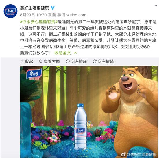 “饮水安全,熊熊有责”——熊出没x康师傅饮用水,联手推出趣味定制版“熊熊瓶”,并于近日在全国高能出没。