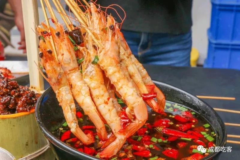 单身人士的最爱——裸奔坨坨虾:去掉虾壳的Q弹新虾用签子串着,浸泡在香辣的汤汁里,即使没有人剥虾壳,也能一串接一串,根本停不下来。