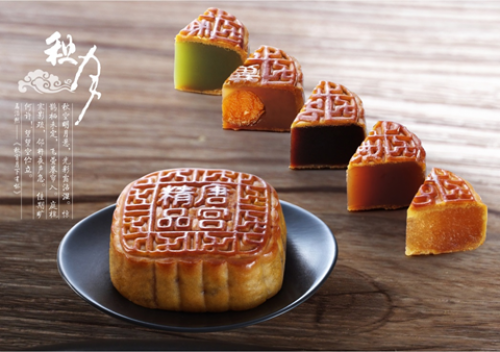 中秋吃月饼,当然也少不了传统的五仁月饼,唐宫金腿五仁月饼采用大杏仁、核桃仁、小杏仁、芝麻仁和瓜子仁加入金华火腿丝精制而成。口味咸香带甜,口感绵软带酥,风味独特。