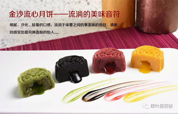 通过了解,我们知道在广府月饼行业中率先产生创意灵感的是西饼店的饼师们,像广州绿叶居西饼连锁的两大掌门人便是其中的佼佼者,技术总监林甫青是誉满两岸的台湾西饼大师,创始人罗澄海是著作等身的月饼达人,他们亦师亦友,经常灵感碰撞,他们开创性地将西式食材运用到月饼中去,他们大胆地将西饼中的抹酱注入月饼中间成流心,他们艺高人胆大地用轻度烘焙的方式最大限度地保留了月饼的水份,他们用中国工笔画般的手艺雕琢出玲珑有致的唯美月饼,他们巧妙地利用几种食材的天然颜色透现出西洋油画般浓淡相宜的色彩…… 一枚月饼让品尝者体会中西美食“你中有我,我中有你”的妙境,真可谓博取中国之美,雕琢世界之味!