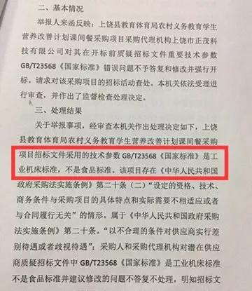 更荒唐的是,用错国标之后收到举报信,上饶县教体局非但不及时处理,反而振振有词“不影响投标人编制投标文件,也不会对投标结果造成影响”。貌似招标书上写个什么标准,本身就是摆设,完全无关紧要,随便写写而已。潜台词不过是:我错了又怎样,谁会真正用工业机床国家标准生产鸭腿?