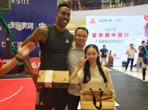 “魔兽”霍华德,在球迷山呼海啸般的呐喊中如约出现,随即被众人围拥,旅程的风尘未卸,依然满脸笑容忙着和到场的观众挥手致谢,尽展亲和一面,真实又吸粉。在现场,霍华德热情的与每一位到场球迷互动,甚至把自己的签名篮球扔给了远处的二楼球迷,瞬间点燃全场的火热气氛。