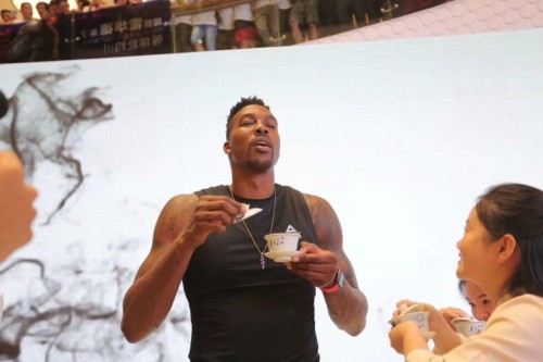 霍华德不仅亲自成功冲泡了一壶黄山毛峰,并意犹未尽的亲口品尝了谢裕大黄山毛峰的美妙滋味,成就了一张“喝了这杯茶,魔兽也要飘”的经典照片。在“谢裕大”的镜头下,来到中国的霍华德不仅是叱咤球场的巨星,更变成了一个沉醉于徽茶茶香的大男孩。谢裕大的好茶征服了NBA“魔兽”霍华德,霍华德的亲切有趣也征服了谢裕大人!