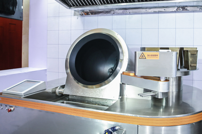 在启用厨房机器人后,可减少厨师的使用量,在这套智慧厨房系统中,厨房机器人负责最终菜品的烹制,自动投料、自动炒菜、自动清洁,5台设备只需一人操作,省时省力。,节省用工成本。不仅如此,专业的食材配送体系也将减少食材的浪费。潘晓勇告诉记者,经测算,在成都一个原本15人的后厨团队,预计一年可省用工成本19.82万元,并产生长期经济效益。