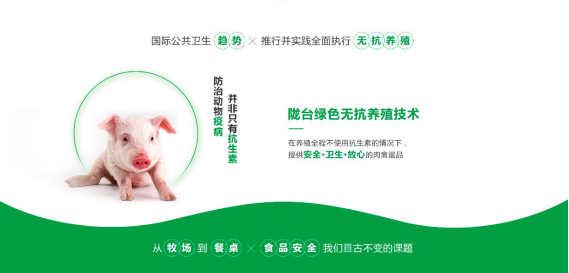 绿色无抗健康养殖就是运用中草药的有效提取物、生物科技及有益微生物,以药食两用者为主,兼顾抗细菌感染及抗病毒,增强动物本身的健康,包括免疫调节、肺部功能保护、增强肠道吸收功能等。加强环境控制,关注生物防治,营养调配,畜禽舍的除臭与粪便的综合利用等措施,改善生长环境,减少动物应激反应。在全程养殖中不使用抗生素,或其他如瘦肉精、磺胺素等化学药物,肉产品完全符合绿色食品标准。无药物的残留,与一般号称药残检出合格的定义,是有质的不同。无抗养殖技术及产品经亚洲权威机构台湾动物养殖所做第三方验证,通过瑞士SGS检测,82项药物检测,含量皆为零。
