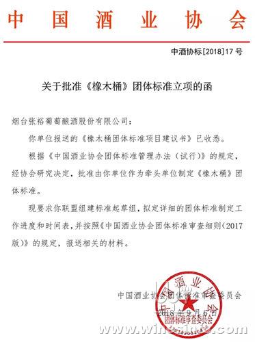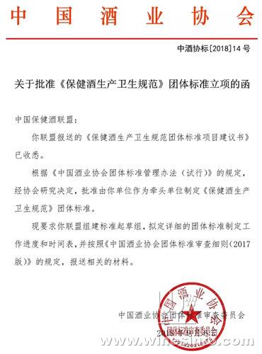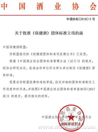 由中国保健酒联盟牵头起草制定的《保健酒》和《保健酒生产卫生规范》团体标准,烟台张裕葡萄酿酒股份有限公司牵头起草的《橡木桶》和《酿酒葡萄》团体标准获得协会的批准正式立项。