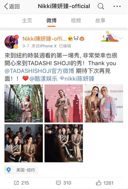 2019春夏纽约时装周落下帷幕,这次时装周不单吸引了随天猫国潮行动出海的众多中国品牌,更有中国女星观秀团在各大秀场上美艳现身。而在国内大热的舞蹈真人秀节目《这就是街舞》上一跳成名的人气选手NIKKI陈妍臻也受邀参加本次春夏纽约时装周,并出席多个品牌秀场。