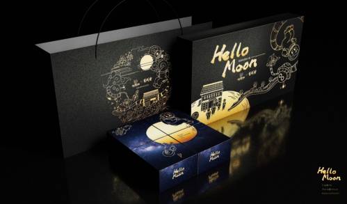 这款独特的磨砂黑配以祥云明月的礼饼盒