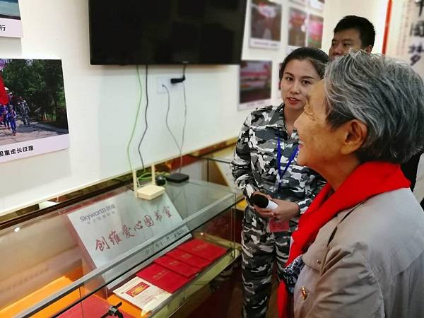 (周恩来侄女周秉德女士参观红军小学陈列室)