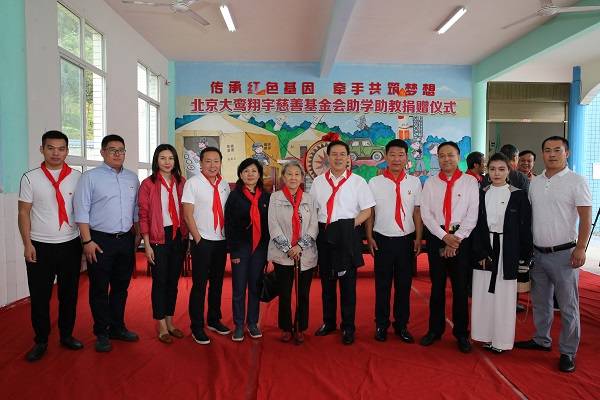 捐资北京大鸾翔宇慈善基金会下设“恩来桃李专项基金”,重点用于兴文县的助学助教工作,以提高兴文县当地教育水平,本次公益助教的启动仪式于9月11日在兴文县红军岩红军小学举行。