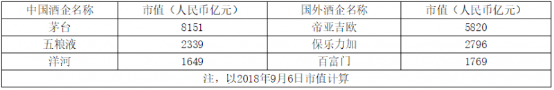 中外烈酒市值对比: