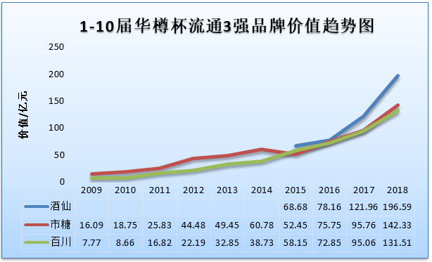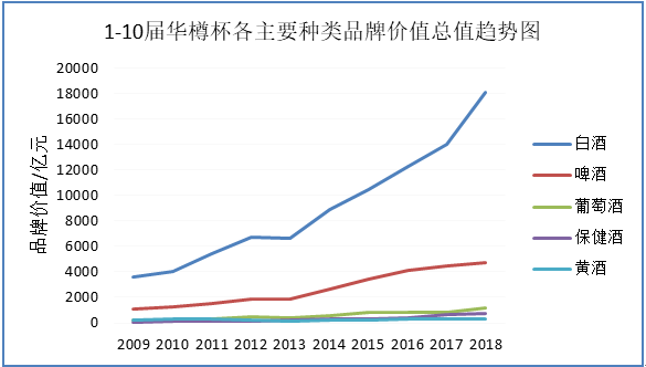 下图为华樽杯10年各主要酒种品牌价值趋势图