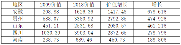 增幅方面,10年来,皖酒品牌价值的增长高达678.61%,在主要产酒大省中排名第1。巧合的是,黔酒的品牌价值增幅也是第2名,高达474.92%。