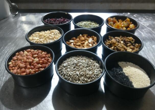 我们的五仁月饼最出名,说是五仁,其实是十几样。核桃仁、美国大杏仁、花生仁、瓜籽仁、南瓜籽、葡萄干、黑芝麻、白芝麻,还有青红丝及玫瑰丝等,周礼霞阿姨边说边扞着月饼皮。