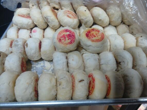 近日,笔者来到周明霞爱拉屋月饼房,她的月饼房是前店铺后作坊。进入作坊月饼香味扑鼻而来,工人师傅们身着工作服正忙着打月饼。