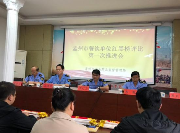9月18日上午,孟州市食品药品监督管理局组织召开全市第一次餐饮业红黑榜评比推进会。班子成员、各监管所所长、稽查大队长和城区70余家餐饮单位负责人参加了会议。