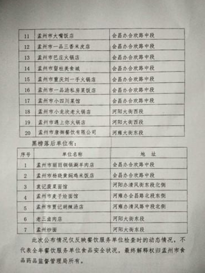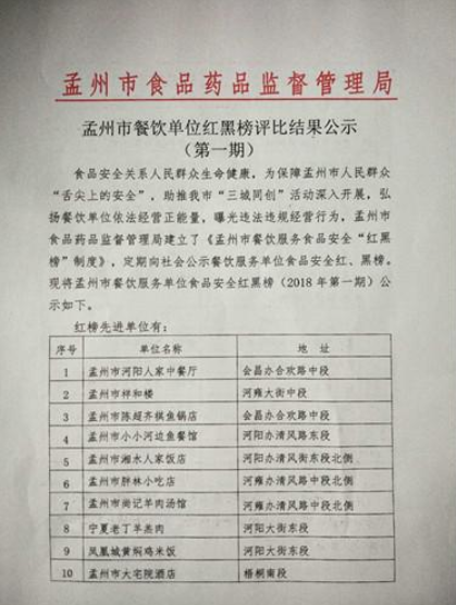 孟州市食品药品监督管理局将持之以恒地做好餐饮业红黑榜制度推进工作,定期召开推进会,并通过报纸、电视、广播以及手机短信、微博、微信等新型媒体发布餐饮服务单位“红黑榜”,引导和促进餐饮单位更好的提升工作,使全市餐饮业管理水平再上一个新台阶。