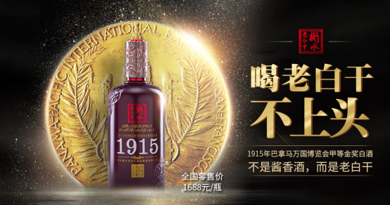 在衡水老白干官方商城中,最醒目的位置摆放着衡水老白干1915的华丽瓶身,其身后背靠一枚金色大奖章,同时映入眼帘的,还有1688元/瓶的售价。这一价格比茅台的主打产品53度飞天茅台的官方价格还要贵出近200元。